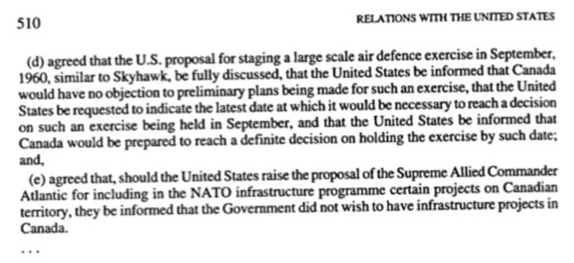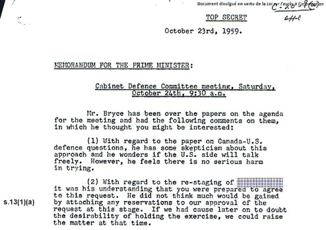 It turns out that the Cabinet did discuss Skyhawk or Skyshield many times – there are SEVENTEEN responsible Cabinet Conclusions – and they are all available online and free of charge from the Library and Archives Canada website. One of them, coincidentally enough, is entitled “Exercise ‘Sky Shield’; public announcement” discussing the timing of a public announcement of the exercise by both Canada and the United States. How could something announced 58 years ago be secret now?