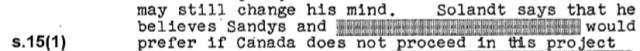 Oh, “the other British people.” That was thought to be secret, but the Minister’s name was not? This doesn’t seem like a judicious use of Section 15(1), which allows the government to refuse to disclose information that “could reasonably be expected to be injurious to the conduct of international affairs, the defence of Canada or any state allied or associated with Canada or the detection, prevention or suppression of subversive or hostile activities,” etc.