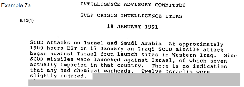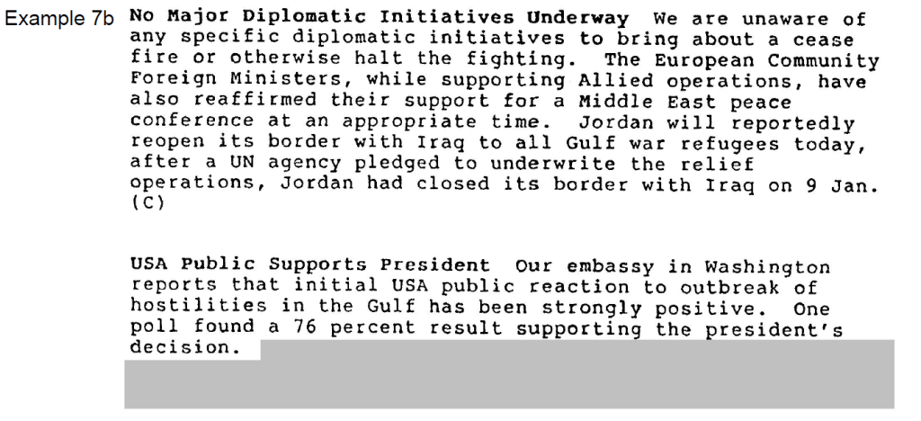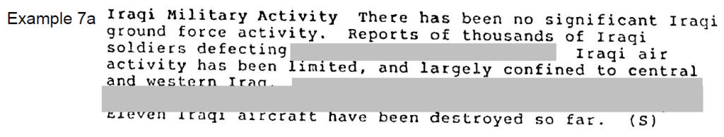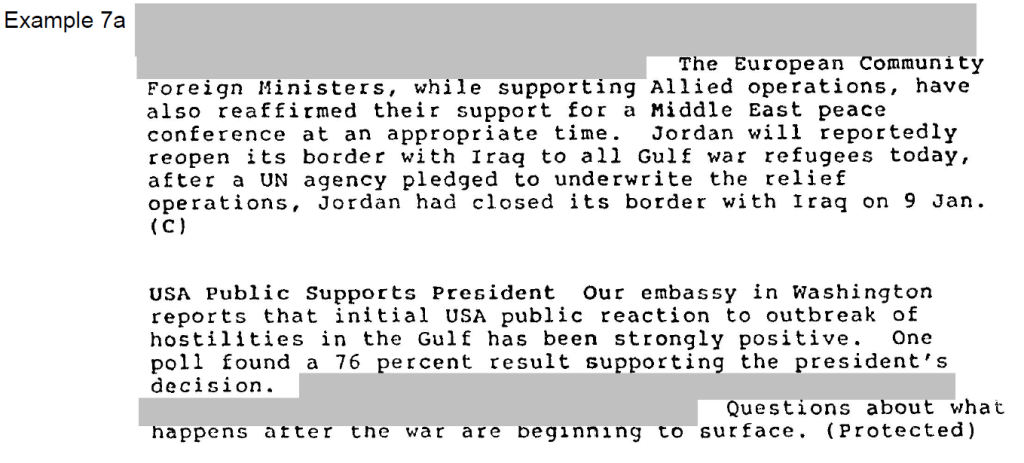 Example 7 – IAC report, “Gulf Crisis Intelligence Items,” 18 January 1991
